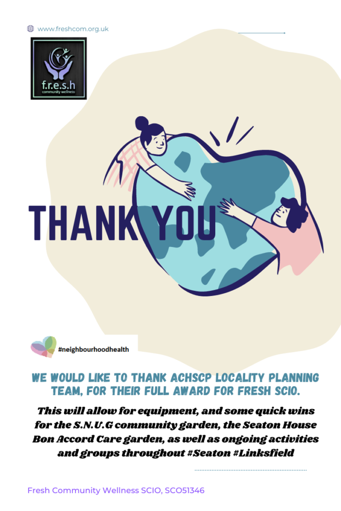 It is with links like this that so much has gone to be achieved. There are many who have assisted, firstly a huge thanks to Shmu, they have never ceased with their help not just for FRESH, but for all of the community. Along with STAR community flat & Aberdeen Gurudwara, who were straight on board, with residents/ Staff from Bon Accord Care 4 supported living blocks too.